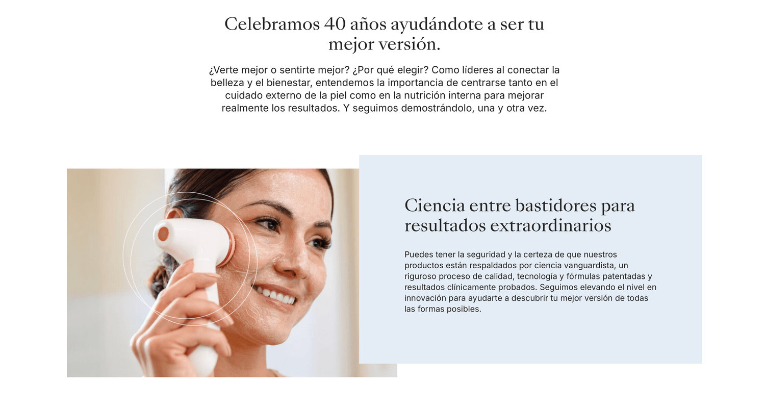 Nuestro socio corporativo, Nu Skin, es una compañía global con más de cuatro décadas de experiencia, reconocida por su innovación constante en skincare y wellness. Su visión, su solidez internacional y su compromiso con la ciencia han creado una plataforma que hoy transforma vidas en todo el mundo. Ser parte de este ecosistema significa emprender con respaldo, proyección global y una visión de crecimiento a largo plazo.